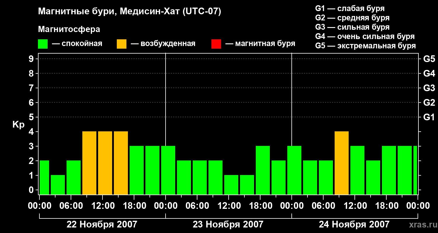 Магнитные бури в Медисин-Хате — 24 ноября 2007 года