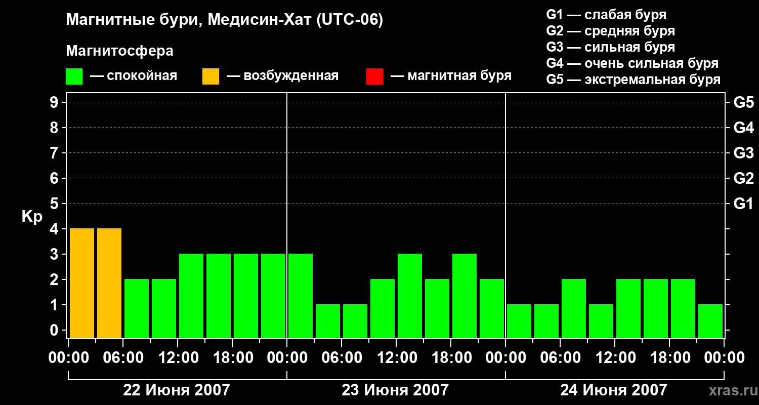 Магнитные бури в Медисин-Хате — 24 июня 2007 года
