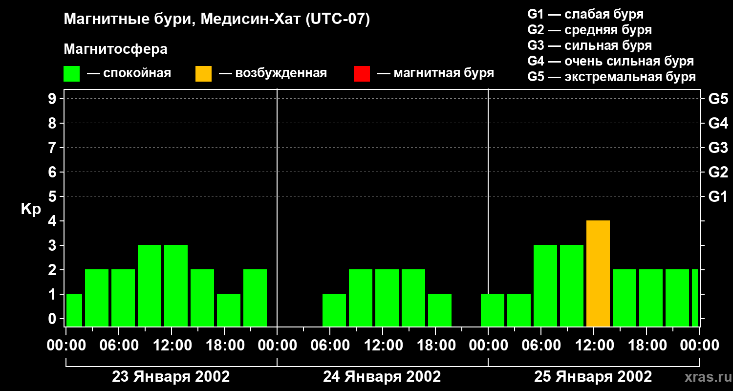 Магнитные бури в Медисин-Хате — 25 января 2002 года