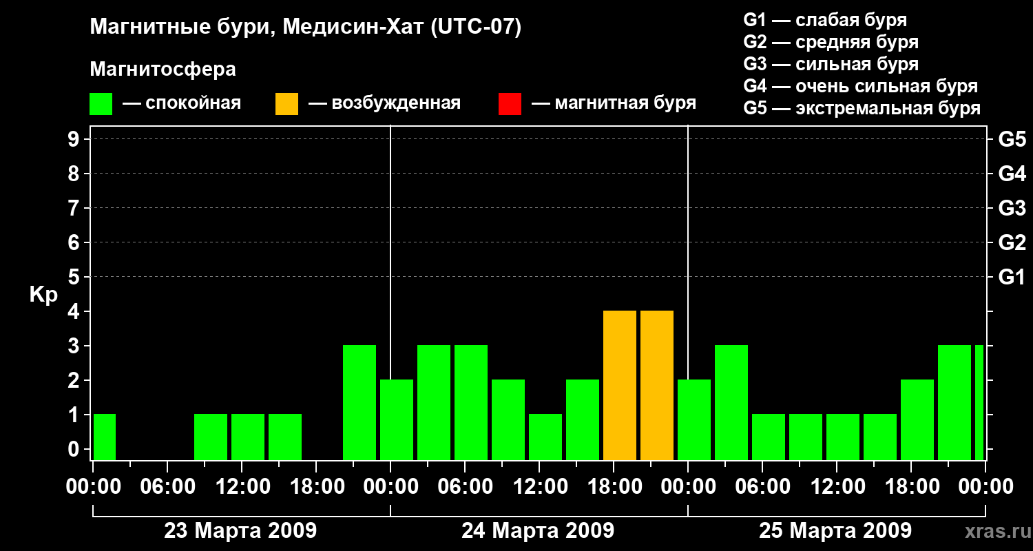 Магнитные бури в Медисин-Хате — 25 марта 2009 года