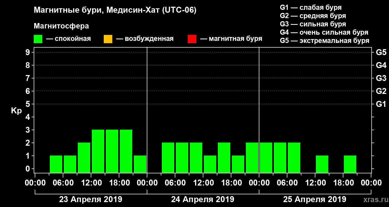 Магнитные бури в Медисин-Хате 25 апреля 2019 года