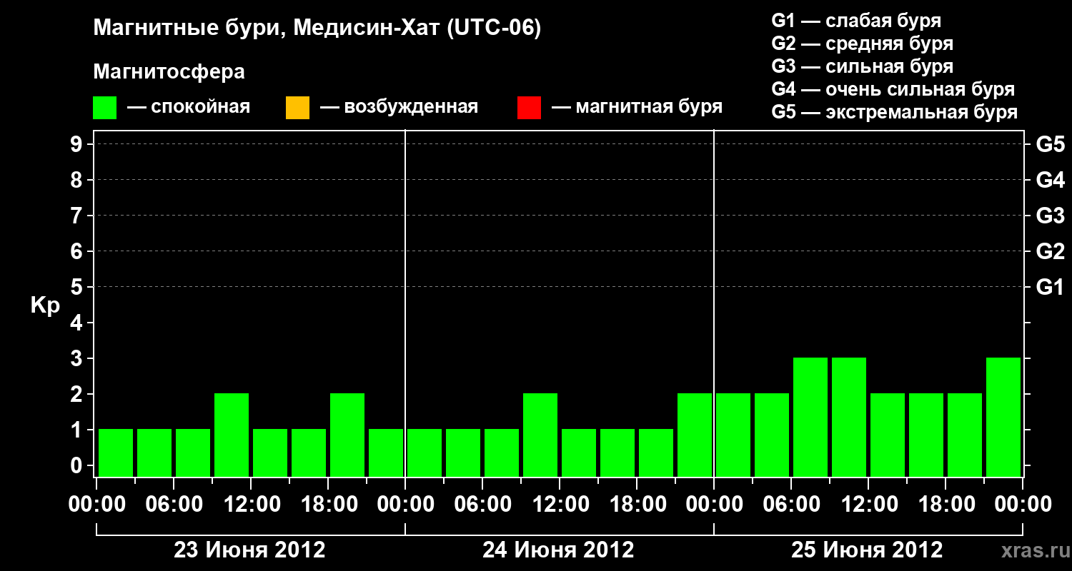 Магнитные бури в Медисин-Хате — 25 июня 2012 года