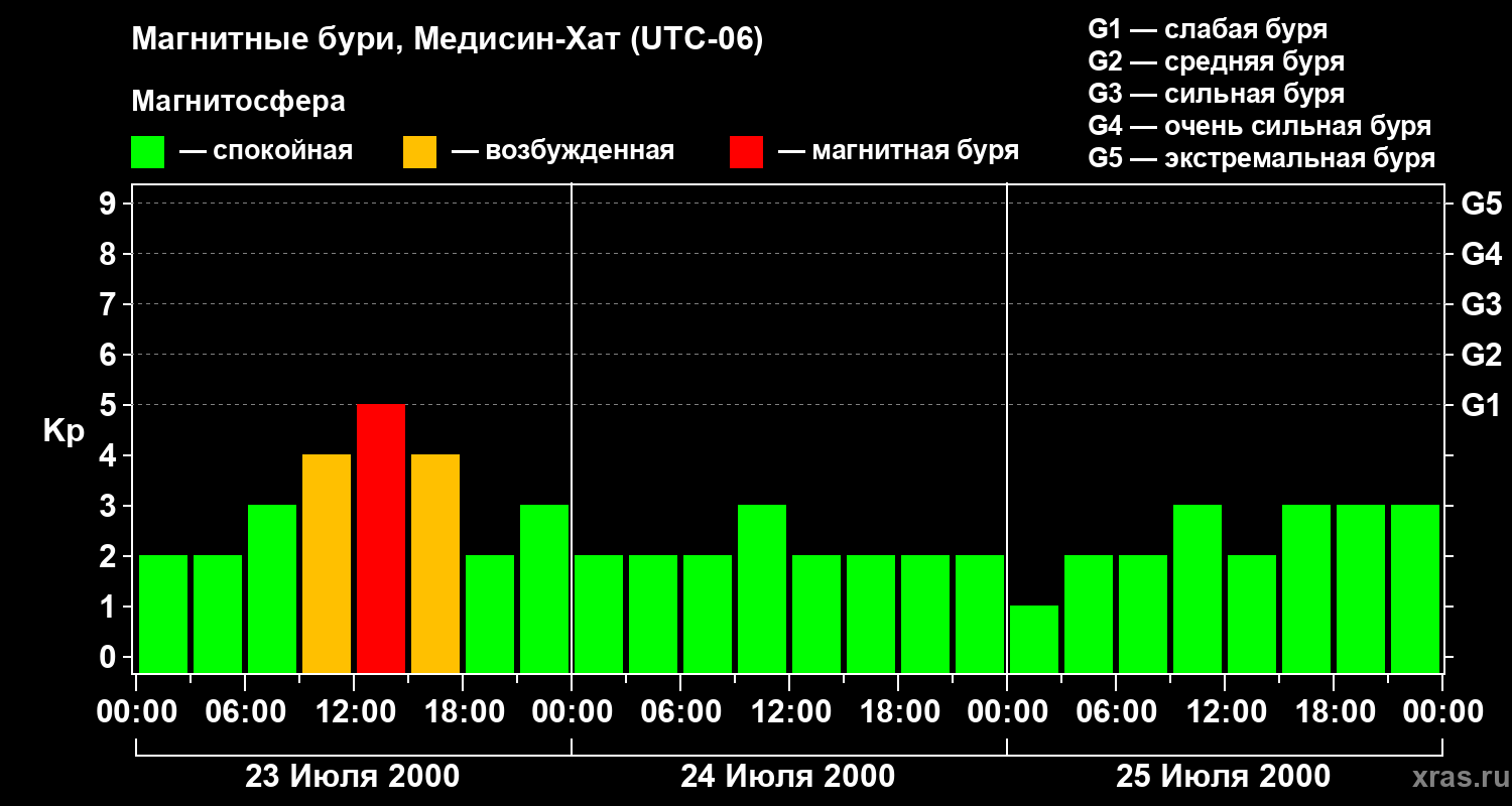 Магнитные бури в Медисин-Хате — 25 июля 2000 года