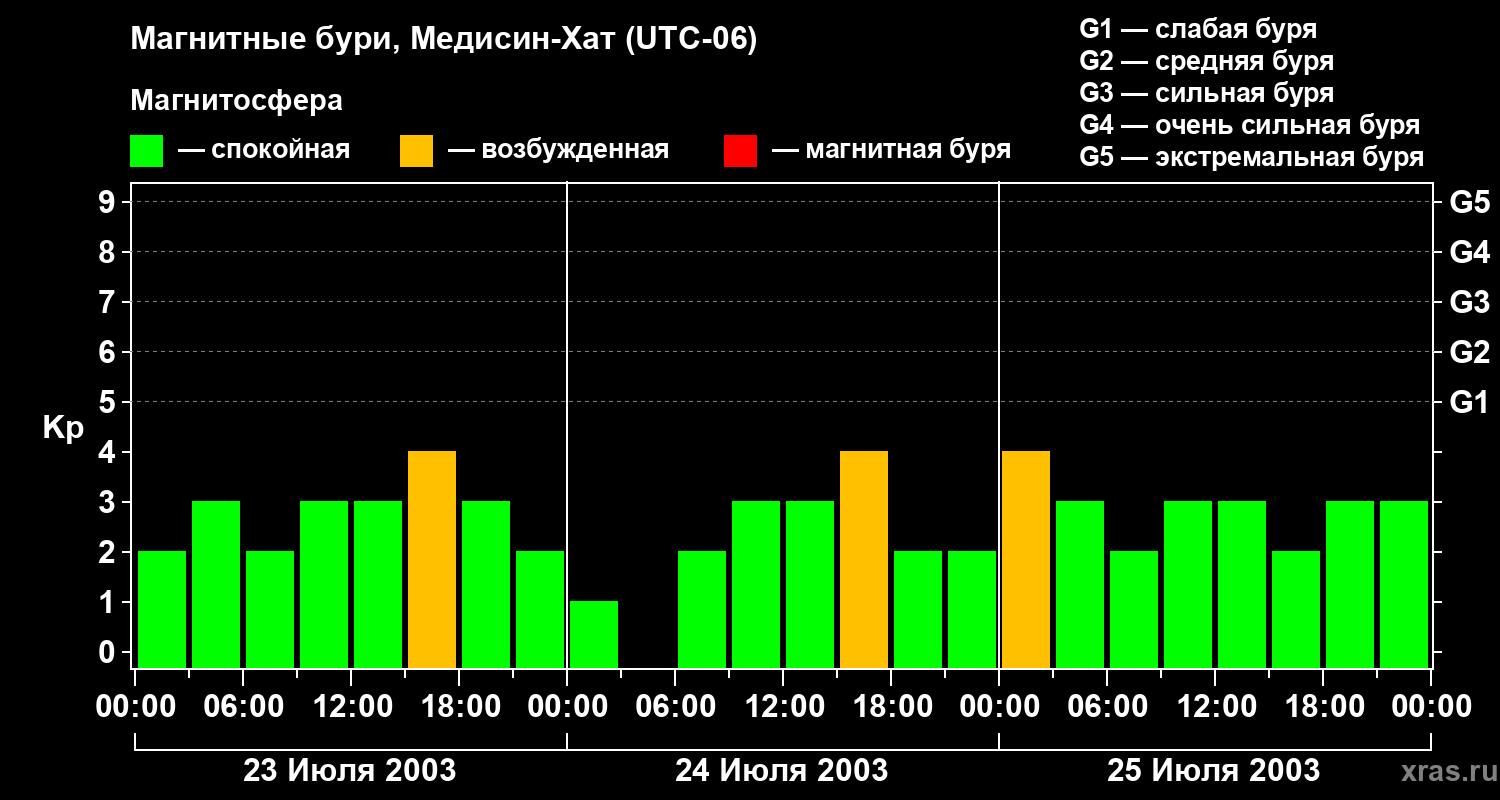 Магнитные бури в Медисин-Хате — 25 июля 2003 года