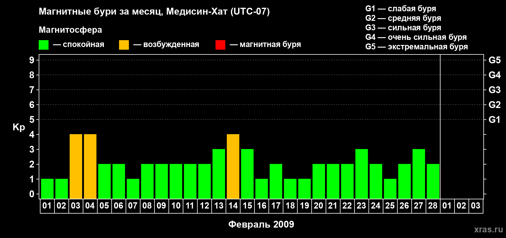 Магнитные бури в Медисин-Хате в феврале 2009 года