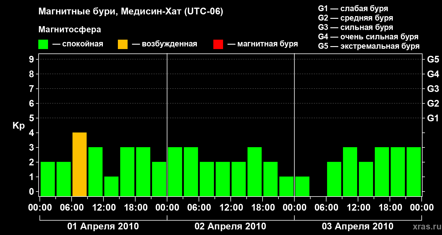 Магнитные бури в Медисин-Хате — 3 апреля 2010 года