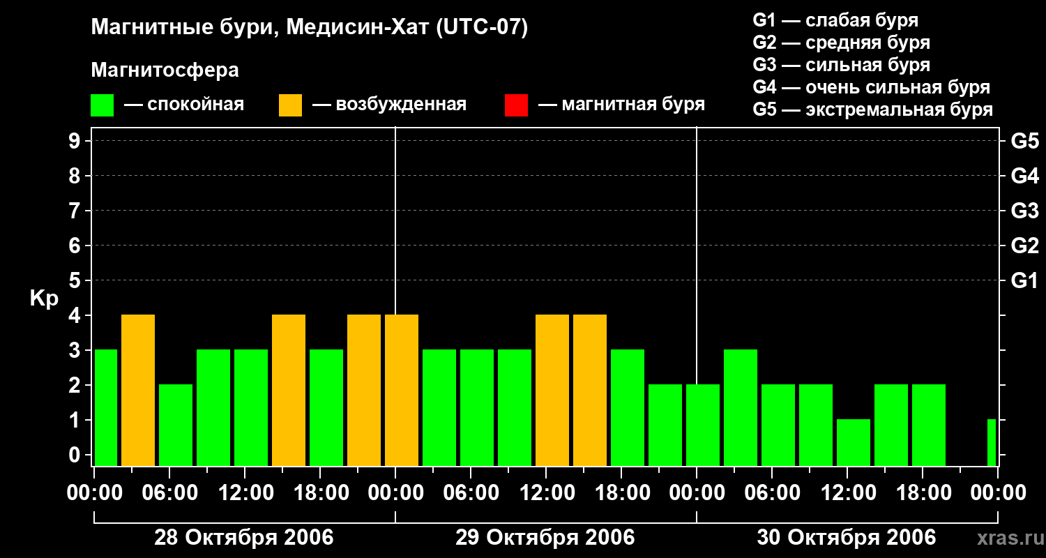 Магнитные бури в Медисин-Хате — 30 октября 2006 года