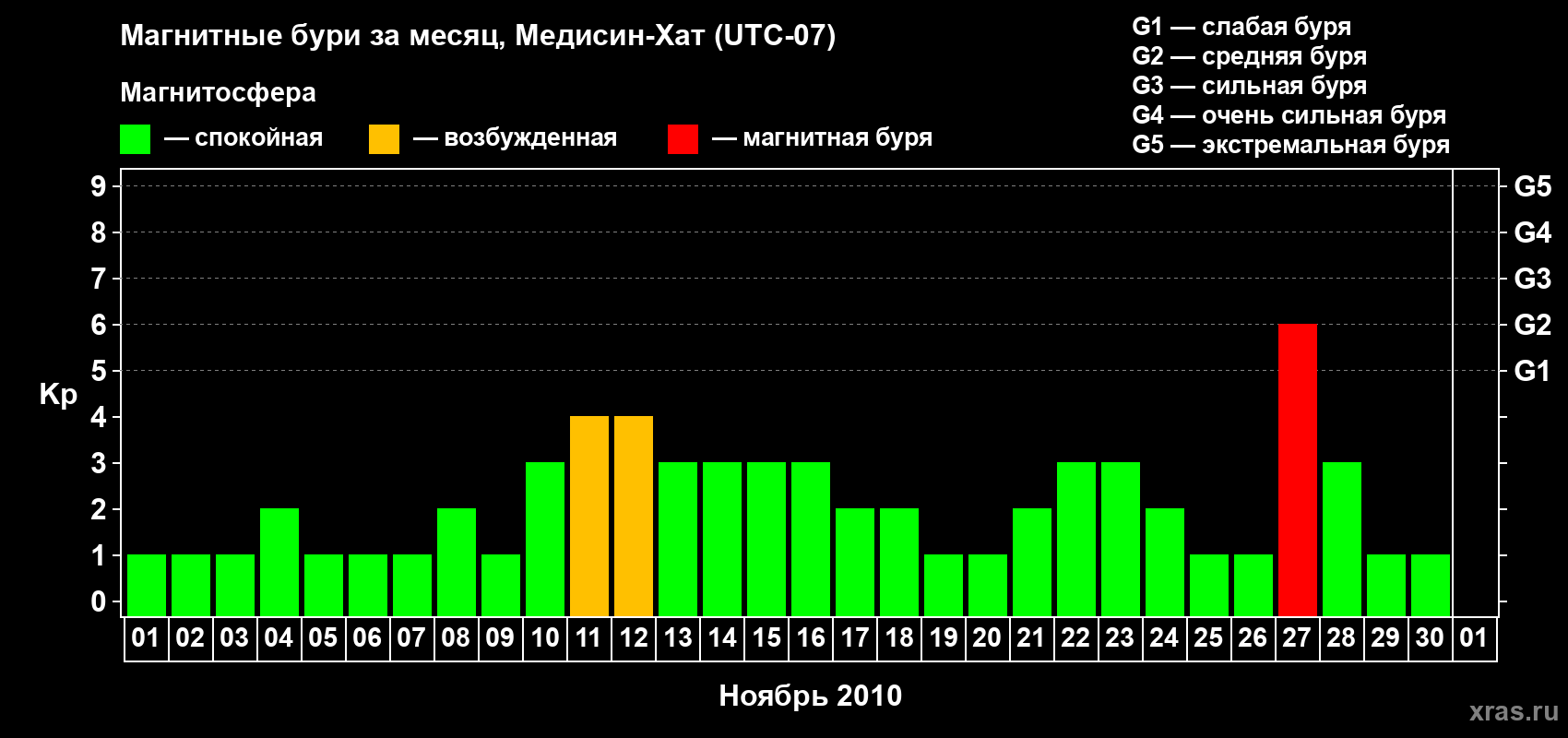 Магнитные бури в Медисин-Хате — 30 ноября 2010 года
