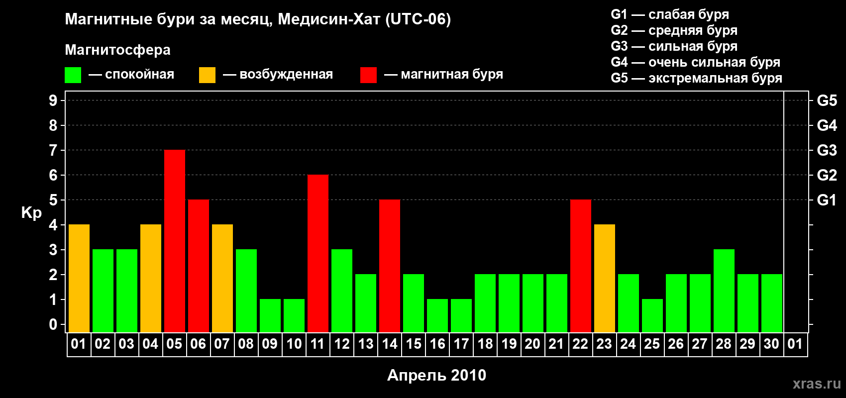 Магнитные бури в Медисин-Хате — 30 апреля 2010 года