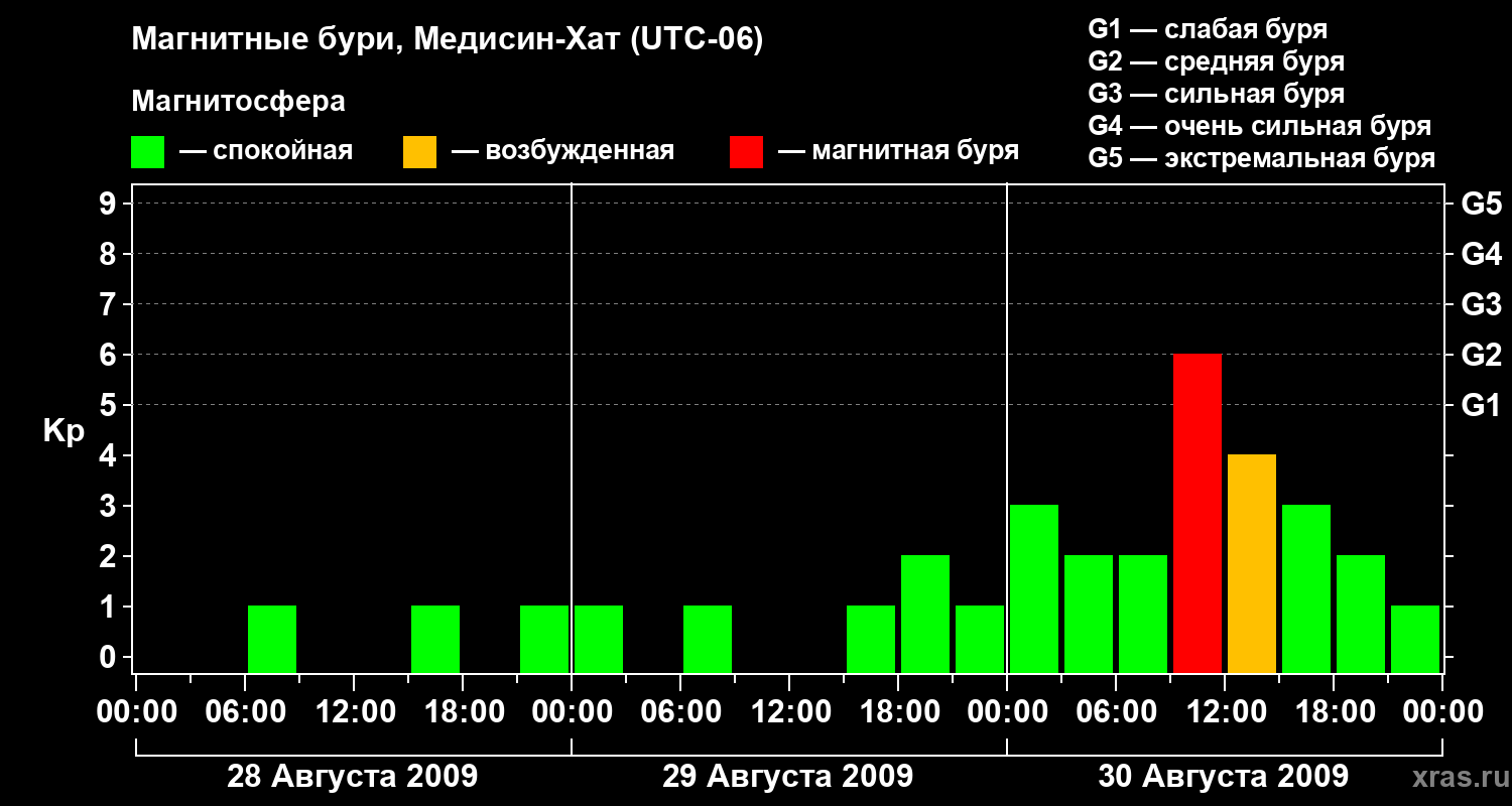 Магнитные бури в Медисин-Хате — 30 августа 2009 года