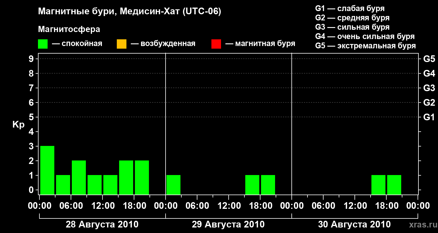 Магнитные бури в Медисин-Хате — 30 августа 2010 года