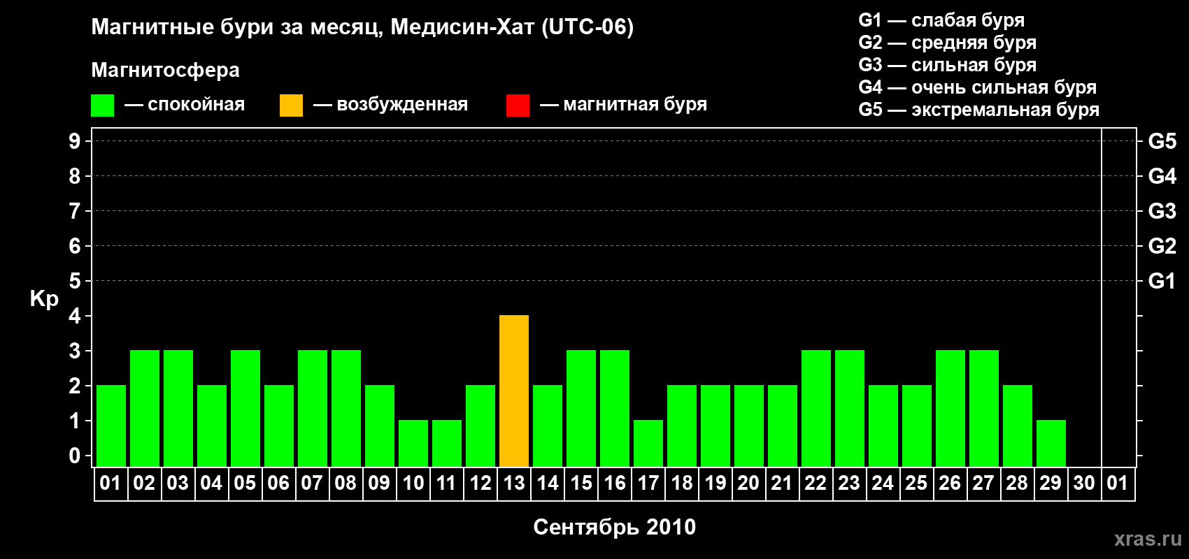 Магнитные бури в Медисин-Хате — 30 сентября 2010 года