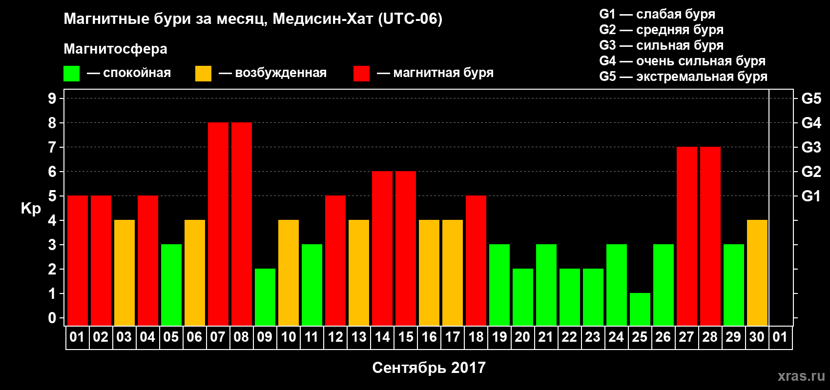 Магнитные бури в Медисин-Хате в сентябре 2017 года