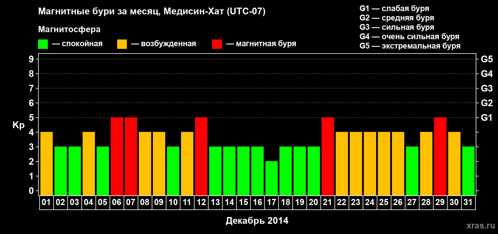Магнитные бури в Медисин-Хате в декабре 2014 года