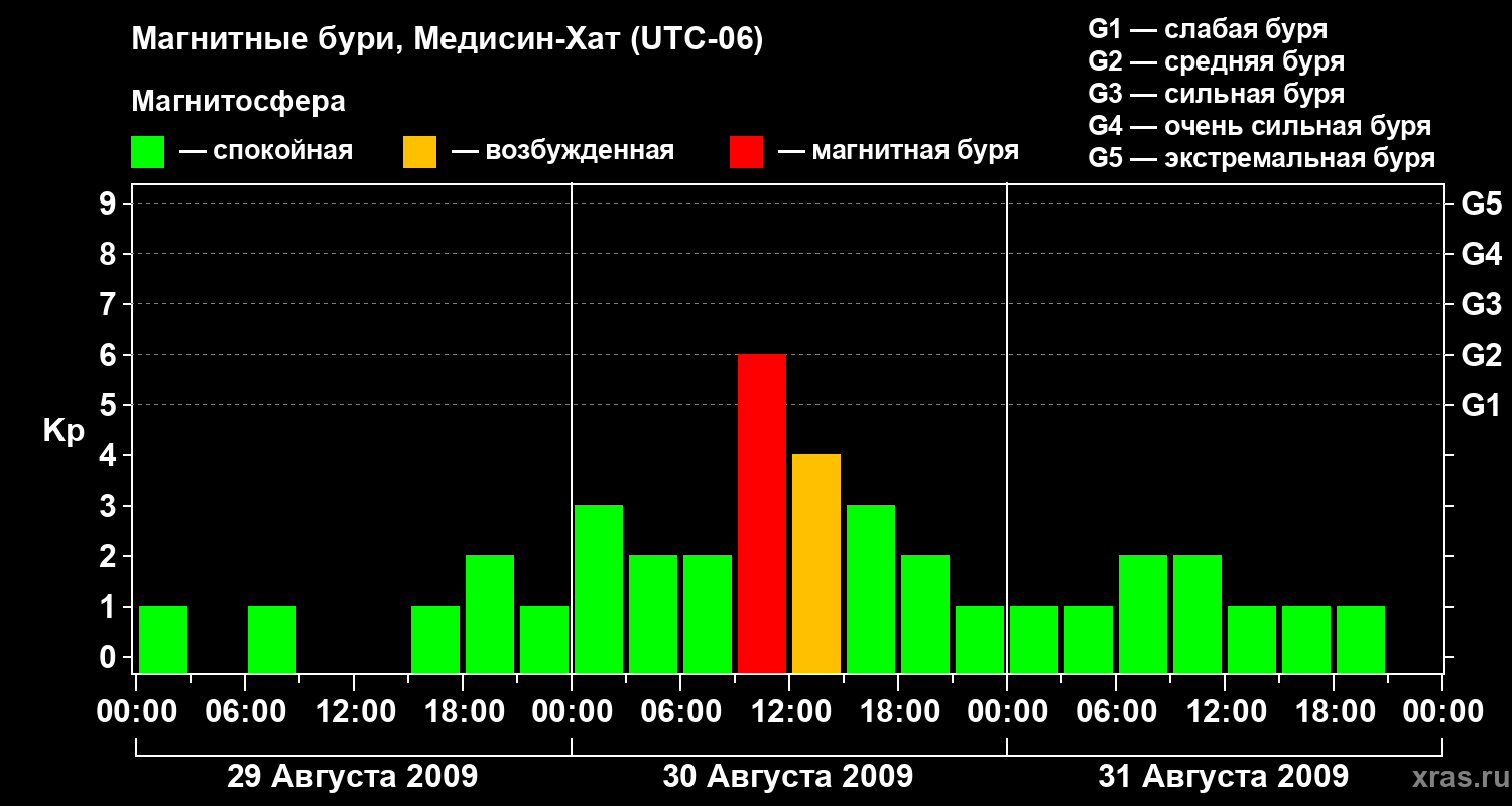 Магнитные бури в Медисин-Хате в августе 2009 года