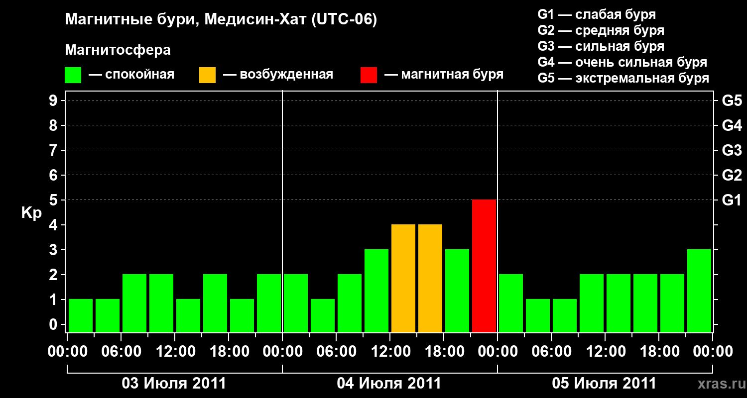 Магнитные бури в Медисин-Хате — 5 июля 2011 года