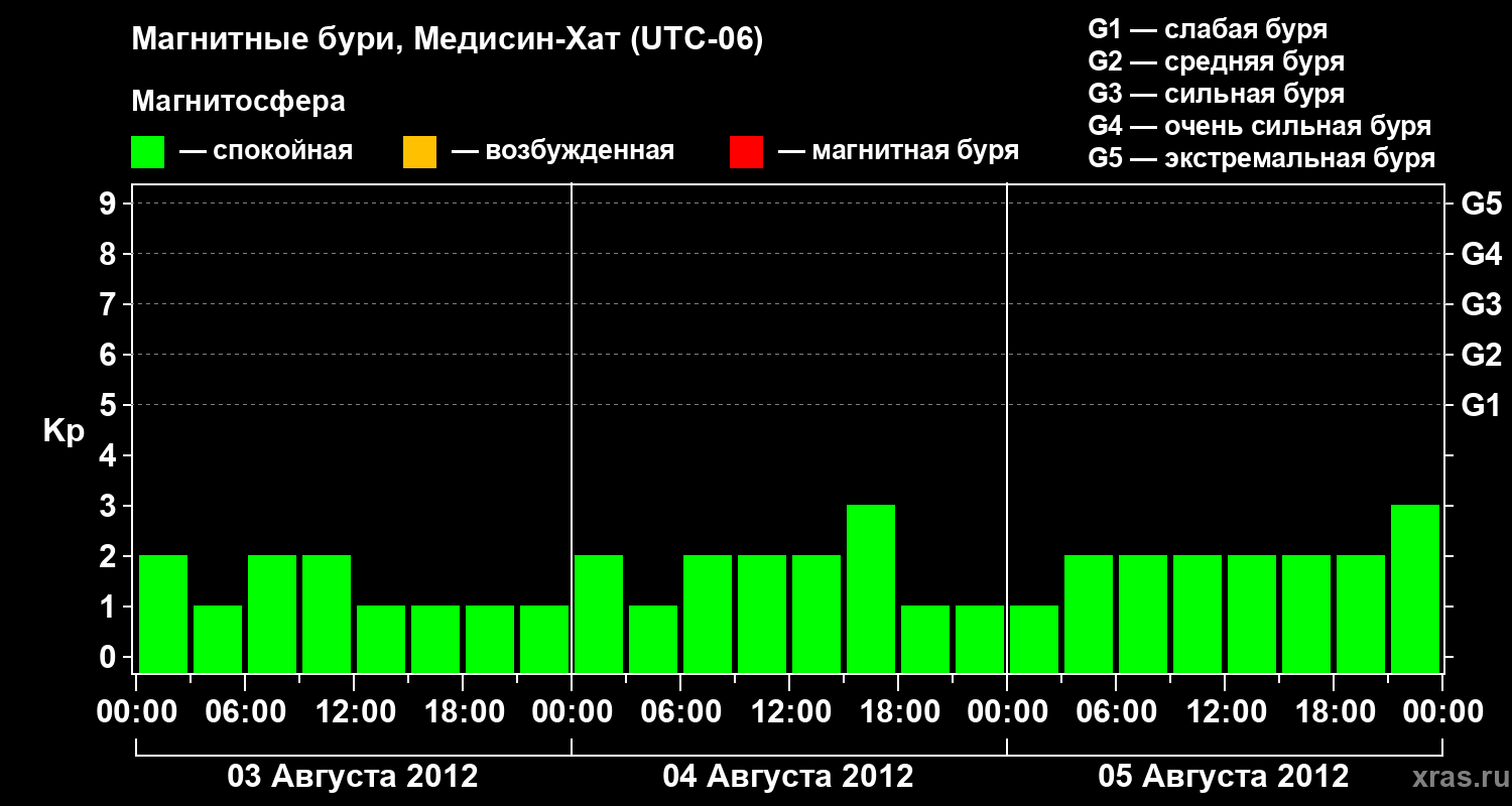 Магнитные бури в Медисин-Хате в августе 2012 года