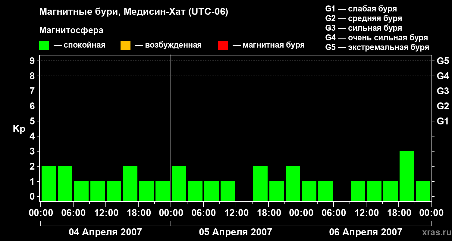 Магнитные бури в Медисин-Хате — 6 апреля 2007 года