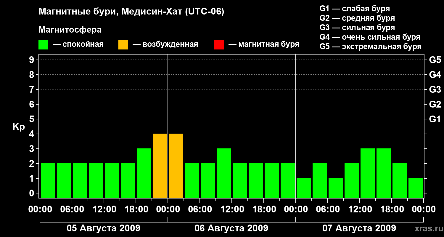 Магнитные бури в Медисин-Хате в августе 2009 года