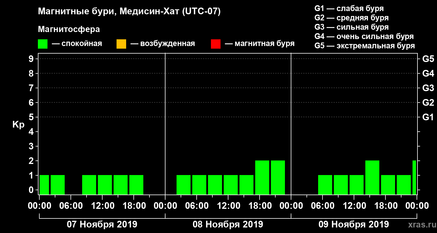 Магнитные бури в Медисин-Хате — 9 ноября 2019 года