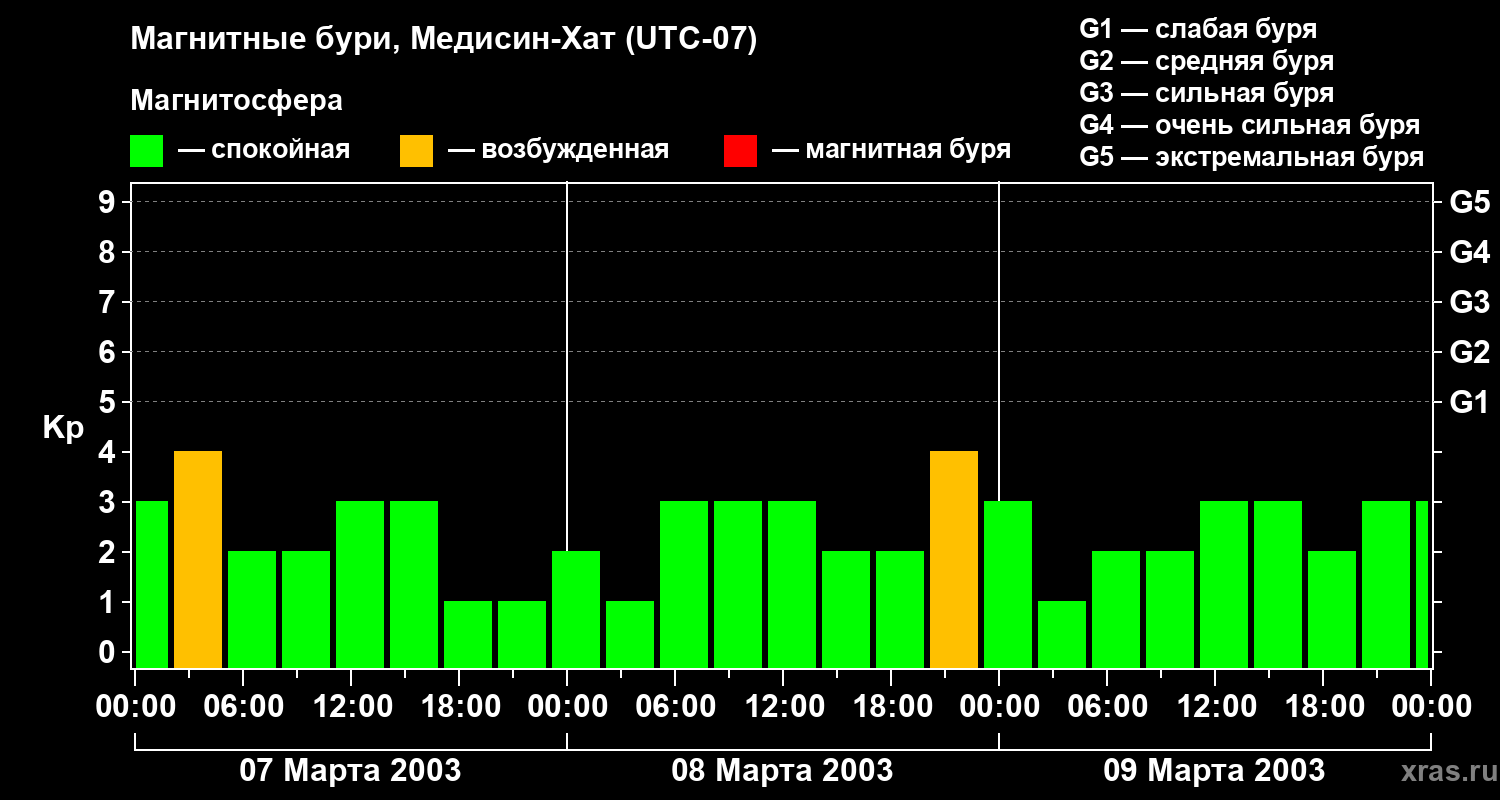 Магнитные бури в Медисин-Хате — 9 марта 2003 года