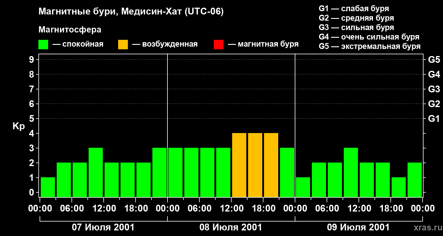 Магнитные бури в Медисин-Хате — 9 июля 2001 года