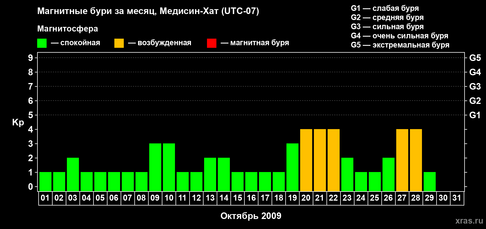 Список магнитных бурь в октябре 2009 года