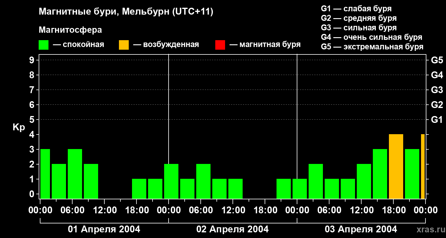 Магнитные бури в Мельбурне — 3 апреля 2004 года