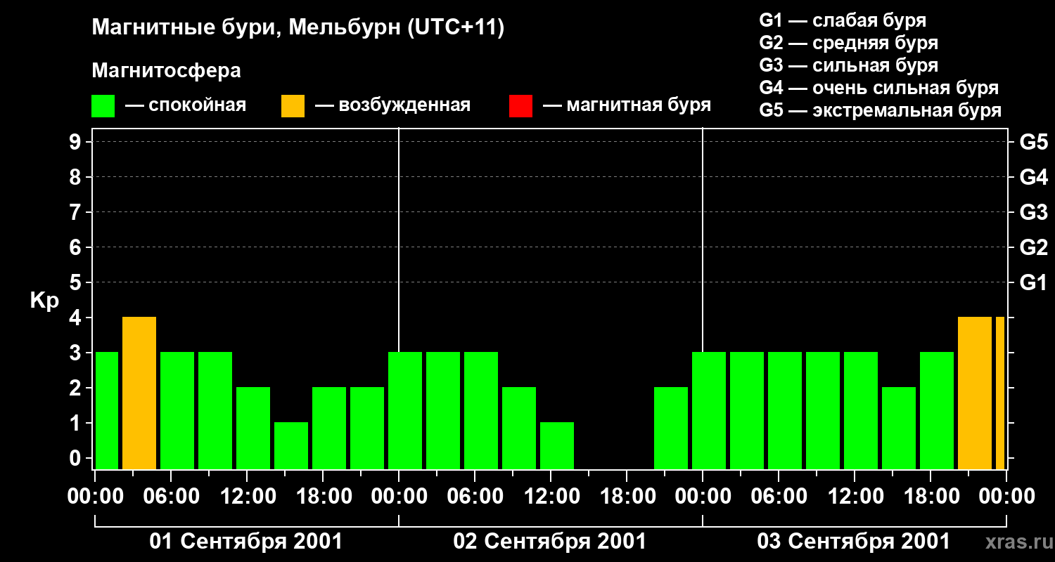 Магнитные бури в Мельбурне 3 сентября 2001 года