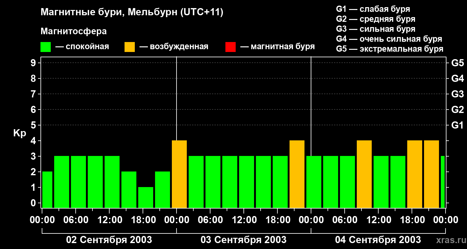 Магнитные бури в Мельбурне — 4 сентября 2003 года