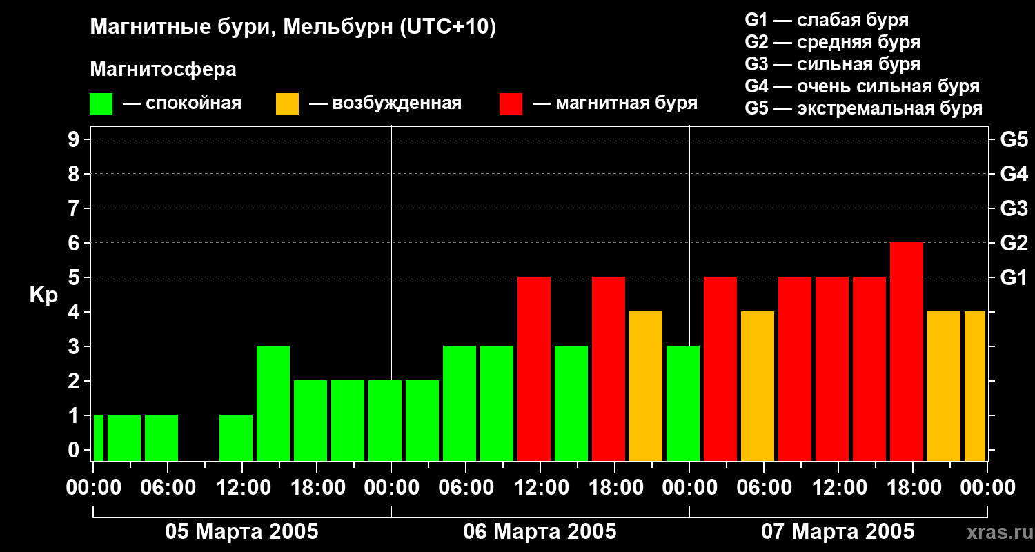 Магнитные бури в Мельбурне — 7 марта 2005 года