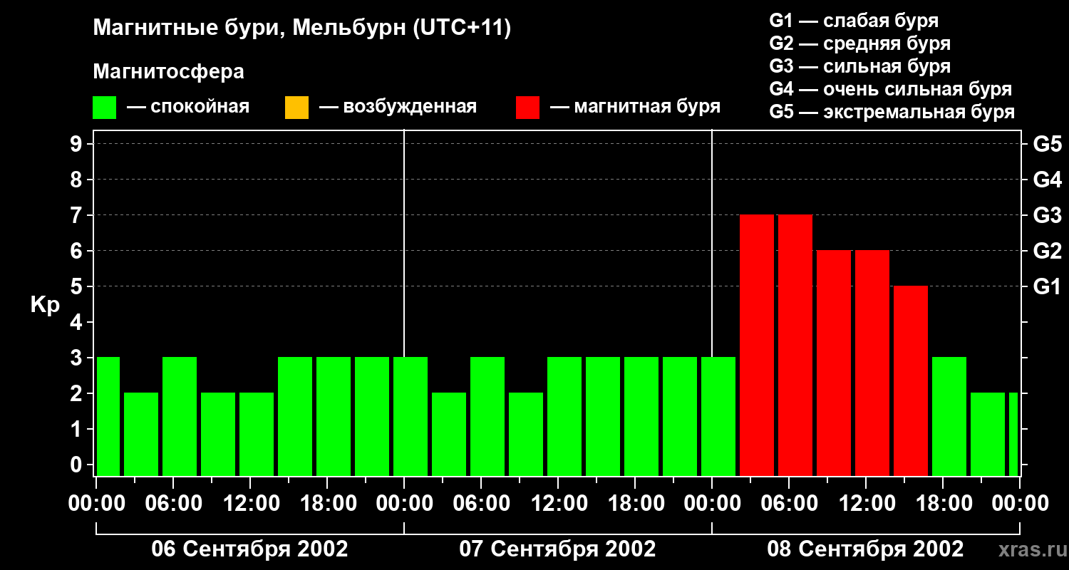 Магнитные бури в Мельбурне 8 сентября 2002 года