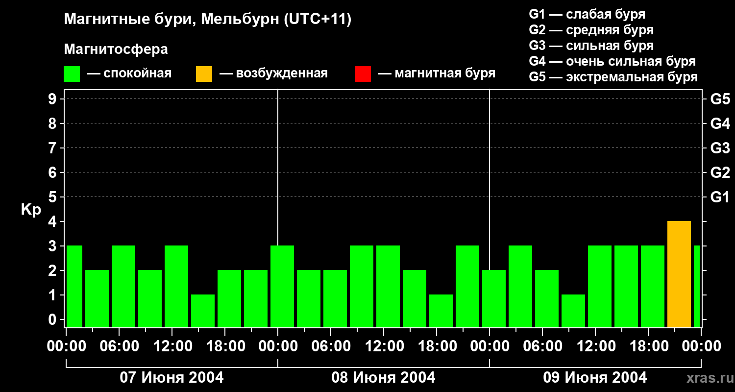 Магнитные бури в Мельбурне — 9 июня 2004 года
