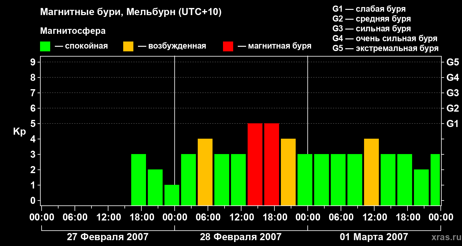 Магнитные бури в Мельбурне — 1 марта 2007 года