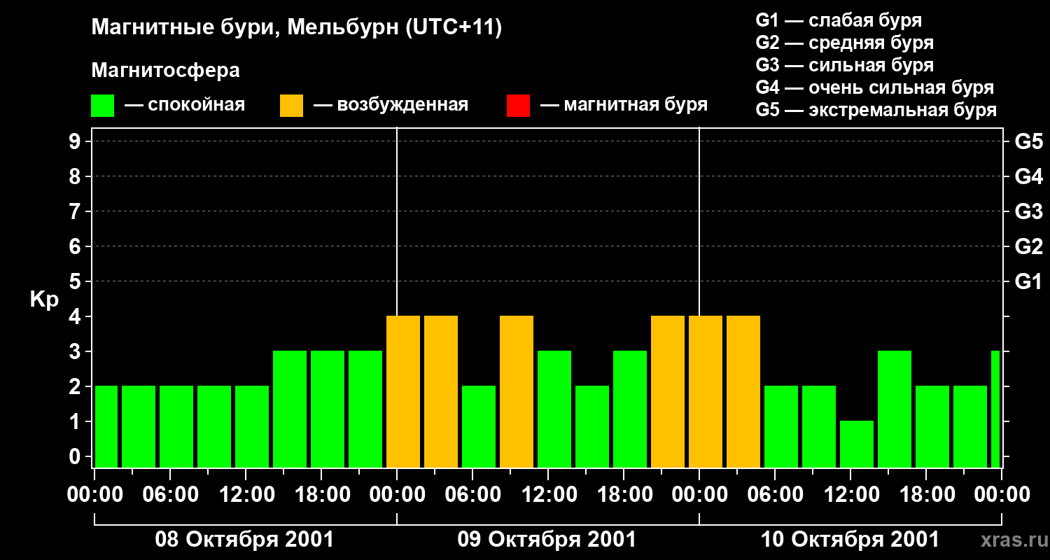 Магнитные бури в Мельбурне 10 октября 2001 года