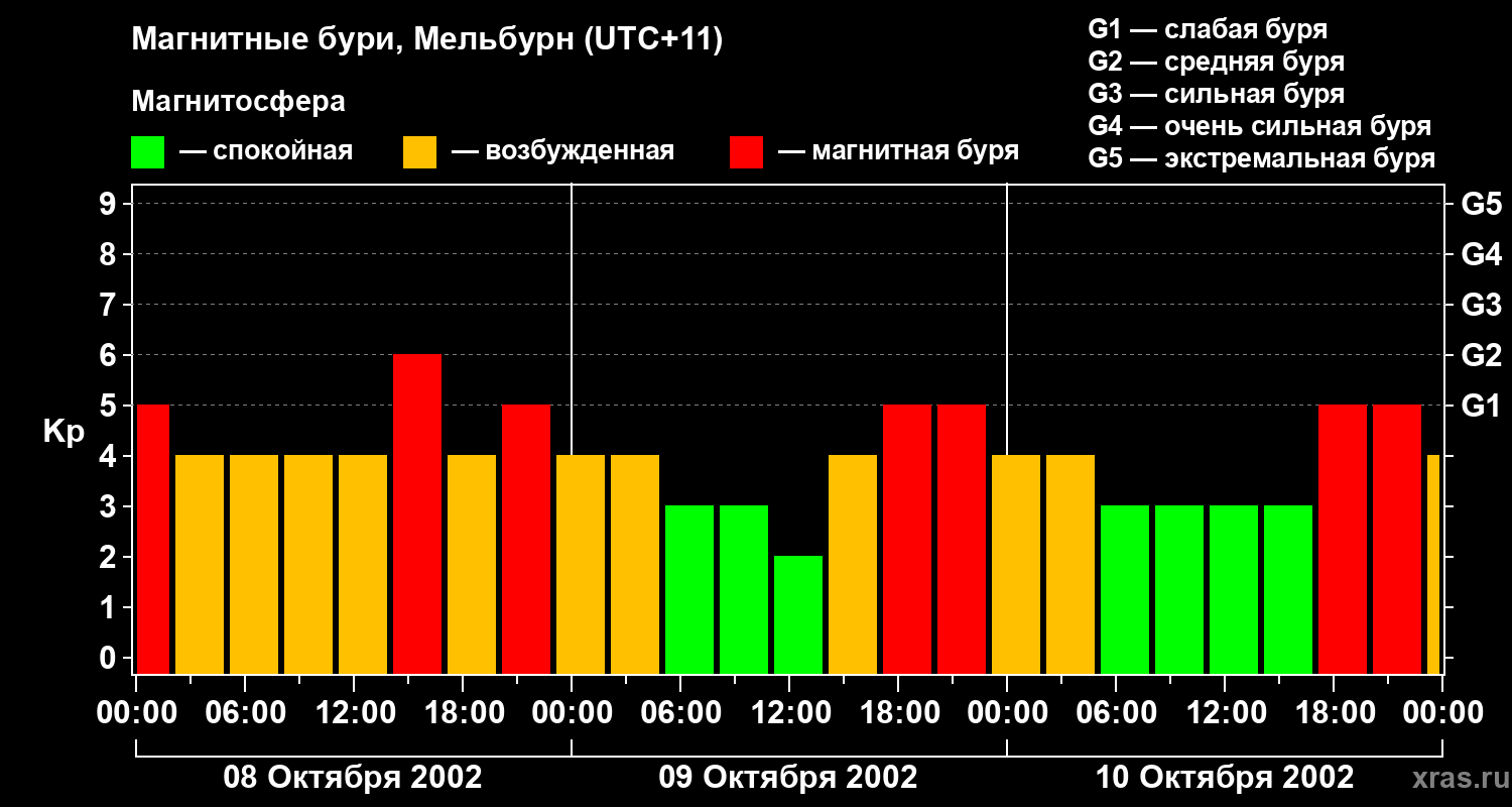Магнитные бури в Мельбурне 10 октября 2002 года