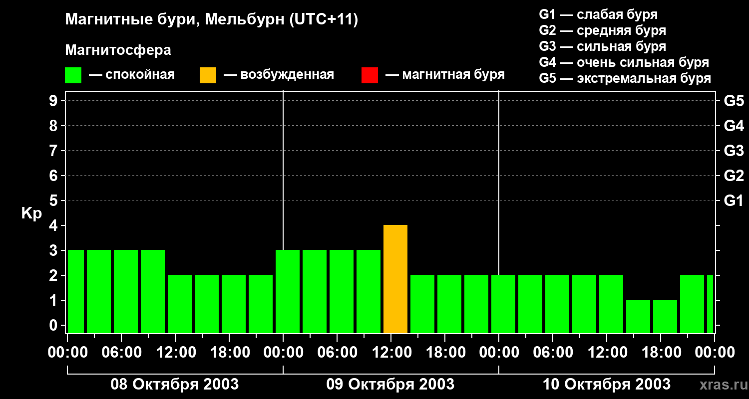 Магнитные бури в Мельбурне — 10 октября 2003 года