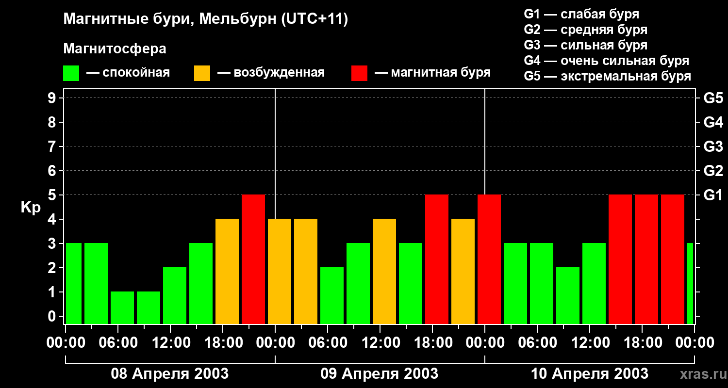 Магнитные бури в Мельбурне — 10 апреля 2003 года