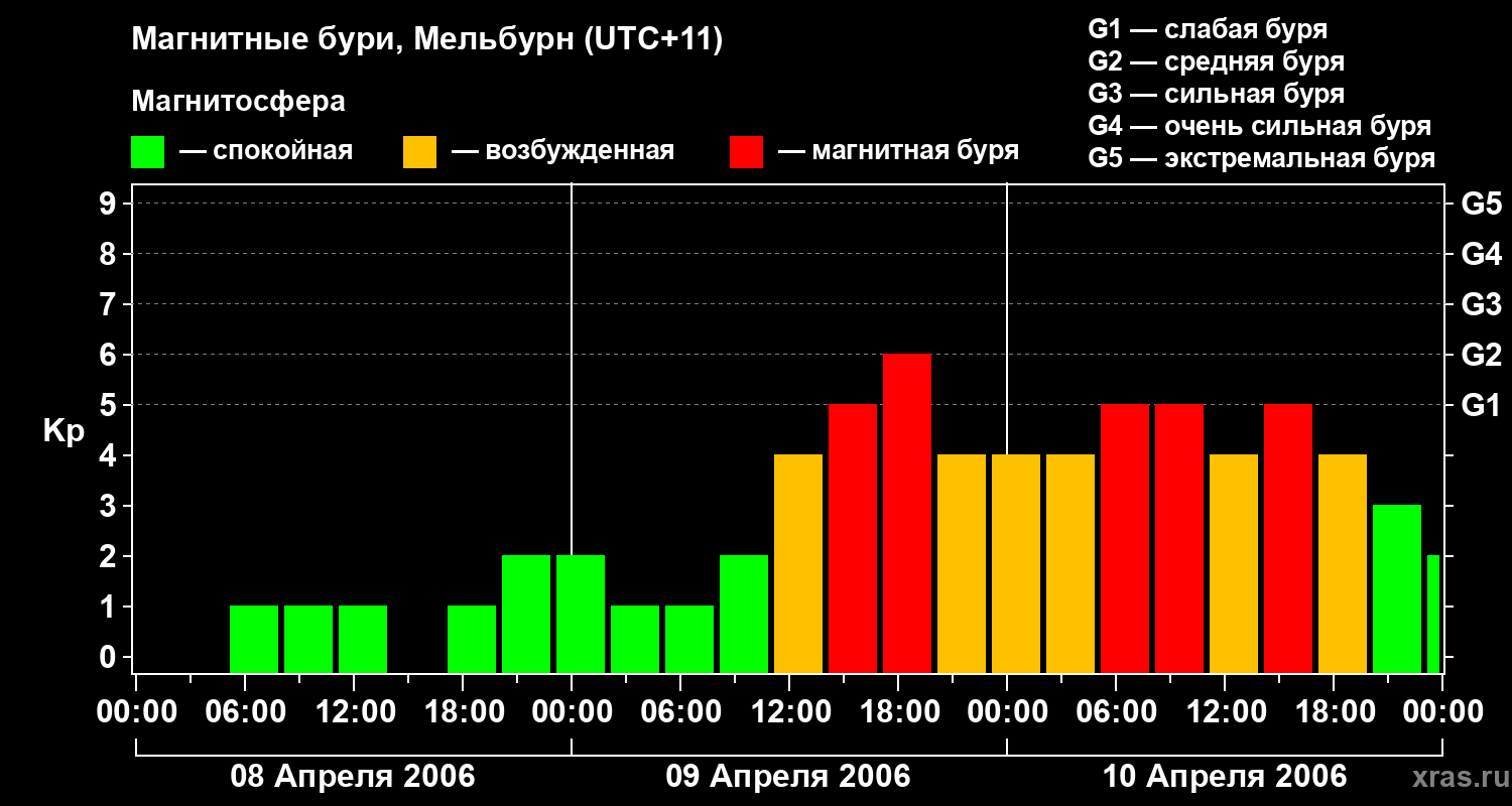 Магнитные бури в Мельбурне — 10 апреля 2006 года