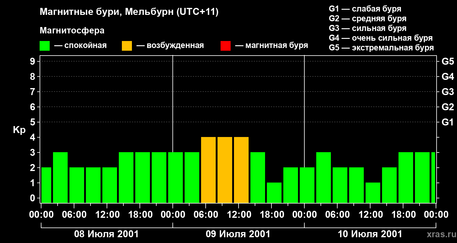 Магнитные бури в Мельбурне 10 июля 2001 года