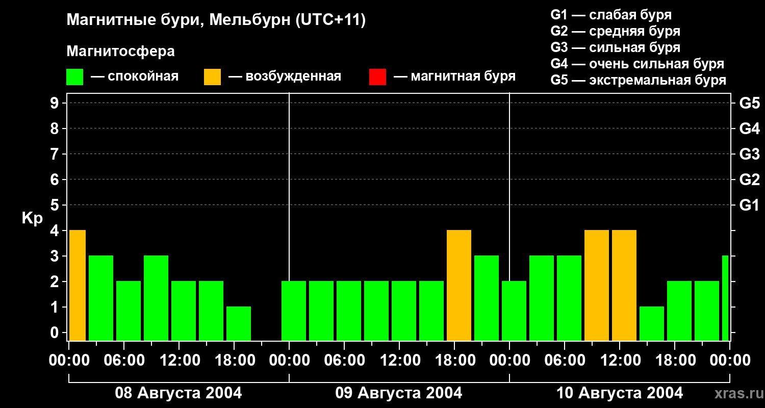Магнитные бури в Мельбурне 10 августа 2004 года