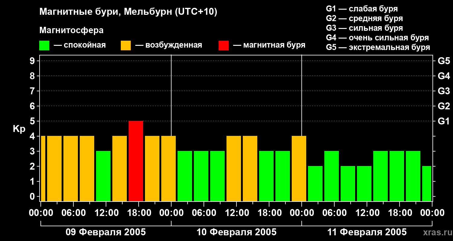 Магнитные бури в Мельбурне — 11 февраля 2005 года