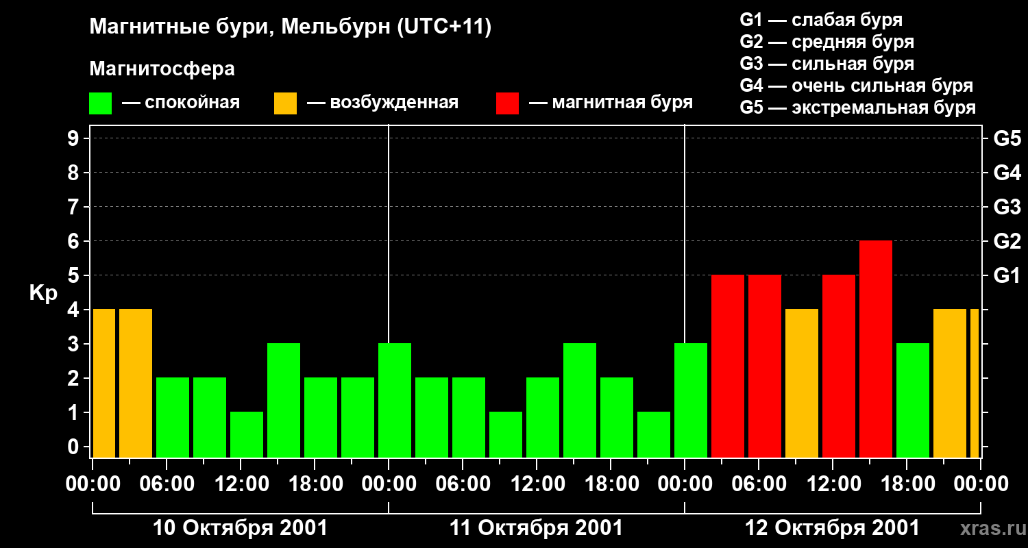 Магнитные бури в Мельбурне 12 октября 2001 года