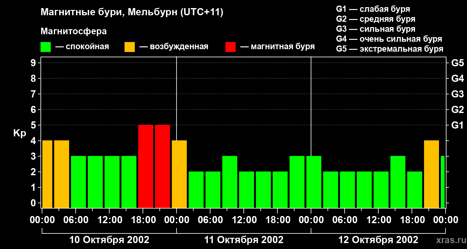 Магнитные бури в Мельбурне 12 октября 2002 года