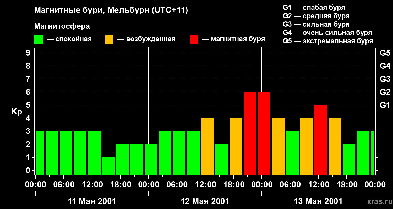 Магнитные бури в Мельбурне 13 мая 2001 года