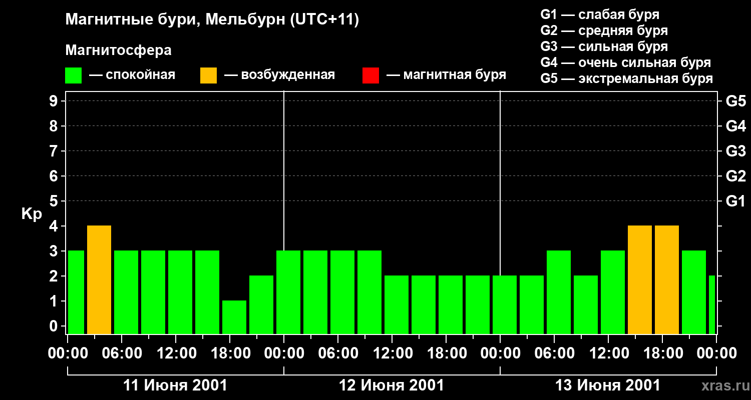 Магнитные бури в Мельбурне 13 июня 2001 года