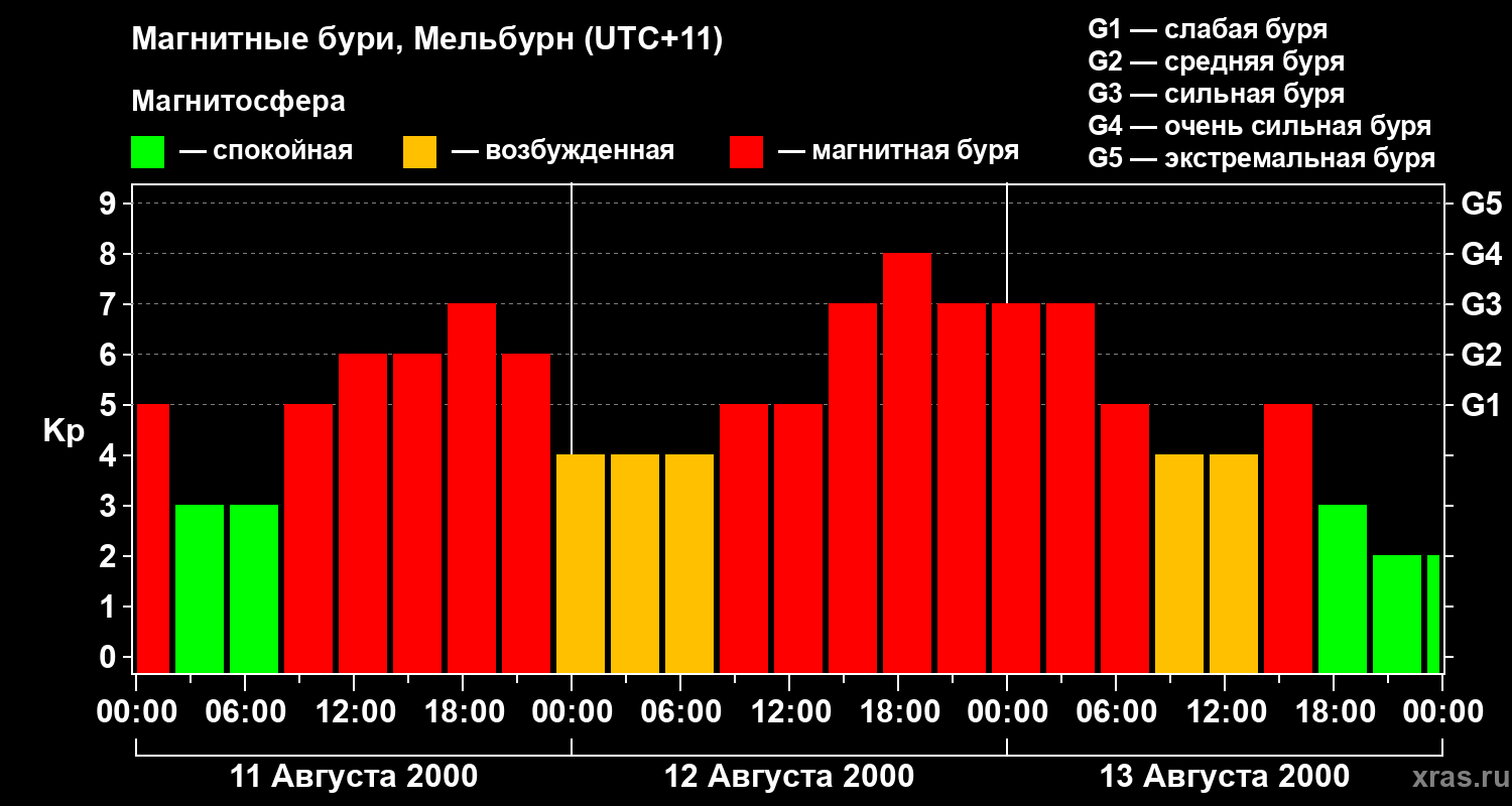 Магнитные бури в Мельбурне 13 августа 2000 года