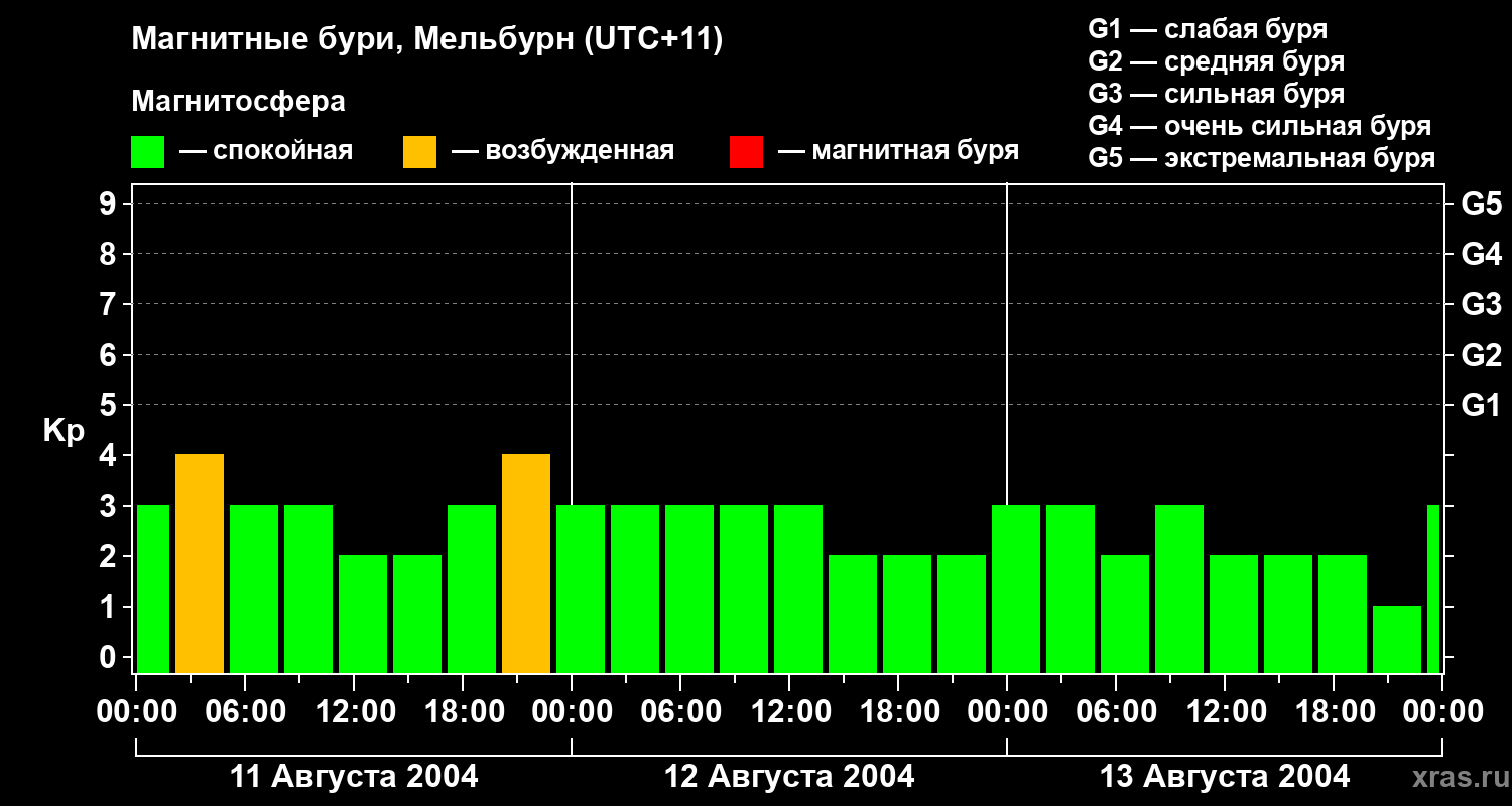 Магнитные бури в Мельбурне 13 августа 2004 года