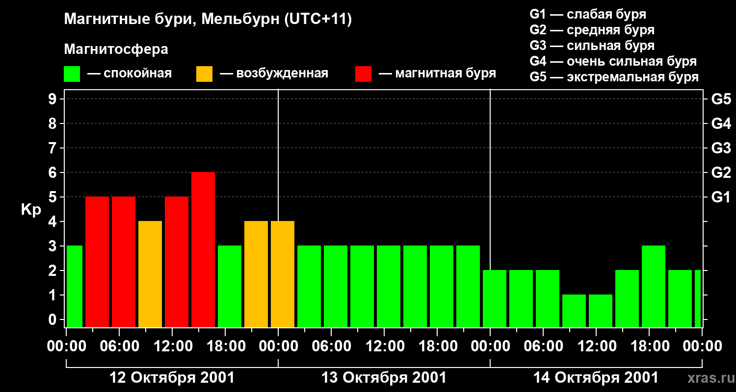 Магнитные бури в Мельбурне 14 октября 2001 года