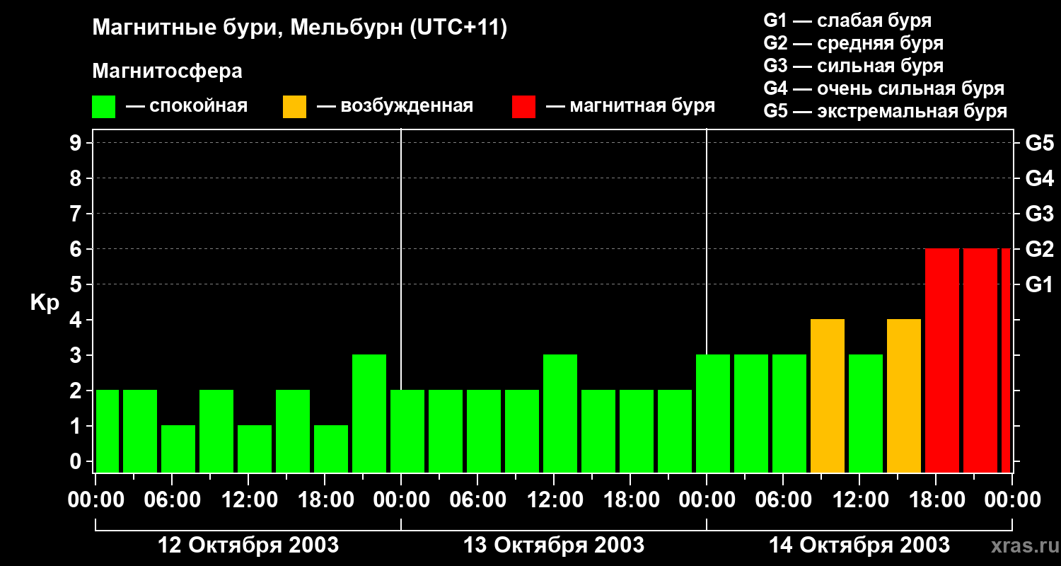 Магнитные бури в Мельбурне — 14 октября 2003 года